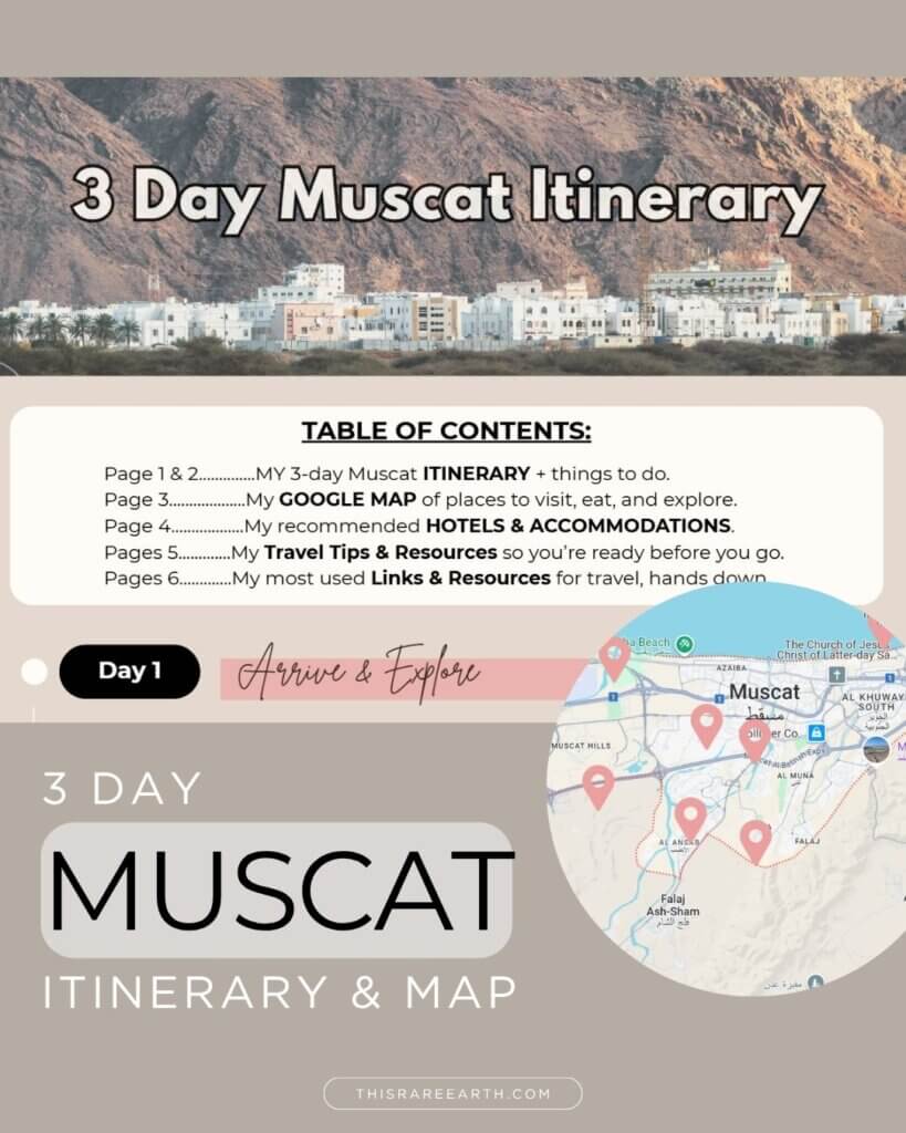 For just $5, you get instant access to my 3 Day Muscat Itinerary, a map of over 30 top places to visit, hotel and tour recommendations, and my best travel tips and resources!